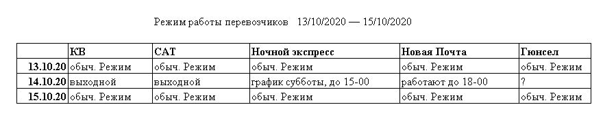 График работы на 14.10.2020